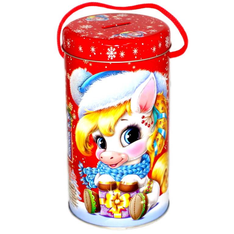 Сладкий новогодний подарок в жестяной упаковке весом 300 грамм