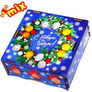 Набор со сладостями Киндер и лучшими конфетами российских фабрик в сказочной упаковке из дерева.