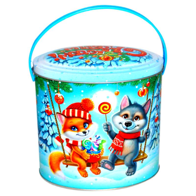 Сладкий новогодний подарок в жестяной упаковке весом 800 грамм
