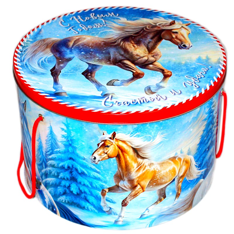 Детский новогодний подарок в жестяной упаковке весом 3000 грамм